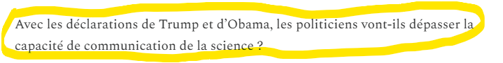 « Avec les déclarations de Trump et d’Obama, les politiciens vont-ils dépasser la capacité de communication de la science ? »