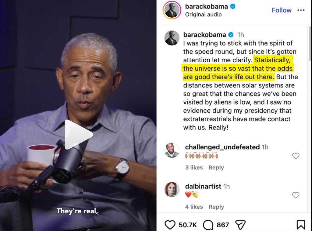Dans une interview, Barack Obama nous a encore fait le coup des ET.